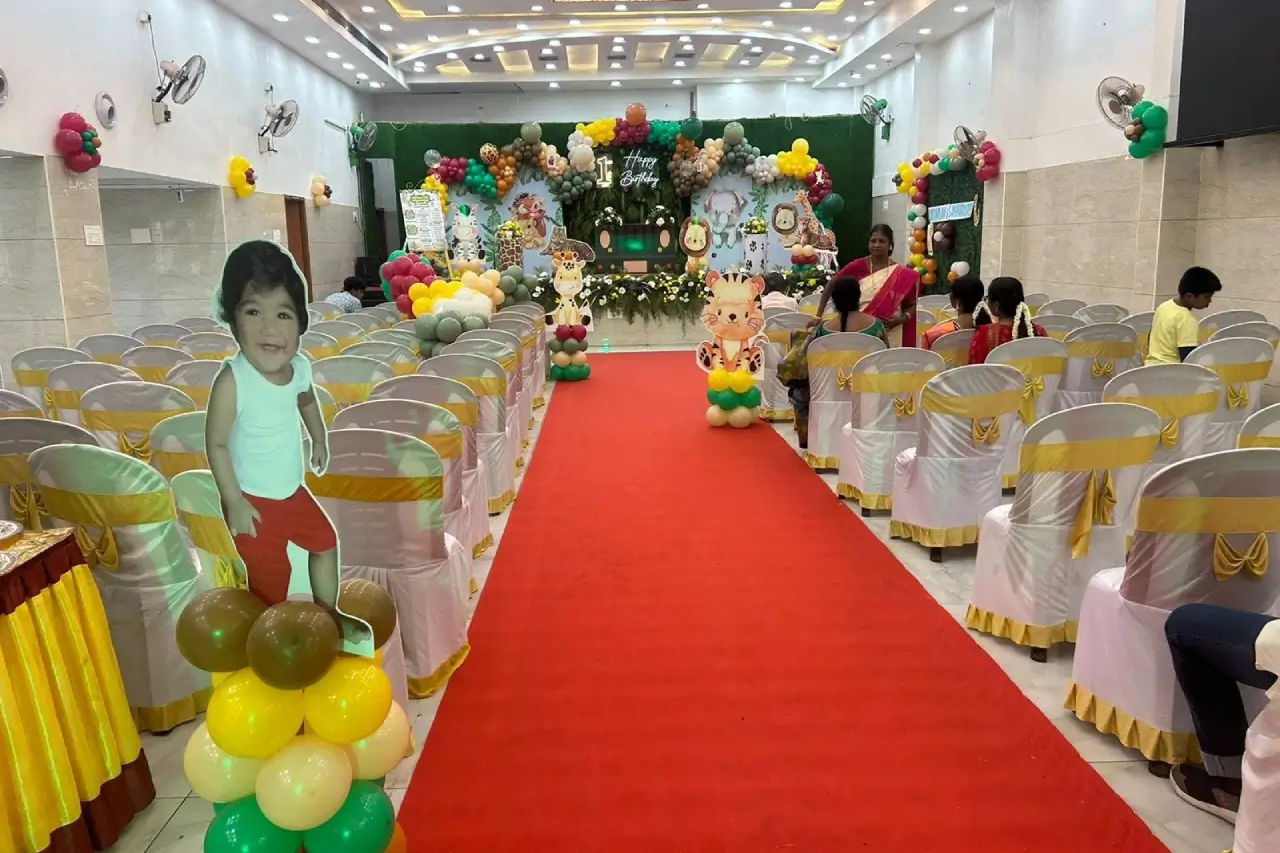 Akshara Mahaall is the perfect venue for weddings and special occasions, comfortably accommodating over 300 guest with floating crowd of 600 guests. Featuring a spacious and elegant layout, it offers customizable seating arrangements to suit your event’s theme and needs. The hall is equipped with modern amenities, combining comfort and style to create a memorable experience for every guest. Known for its professional staff and meticulous attention to detail, Akshara Mahaall ensures flawless event execution. Conveniently located with ample parking, it offers easy access for guests. The elegant ambiance and exceptional service make Akshara Mahaall a top choice for unforgettable celebrations.